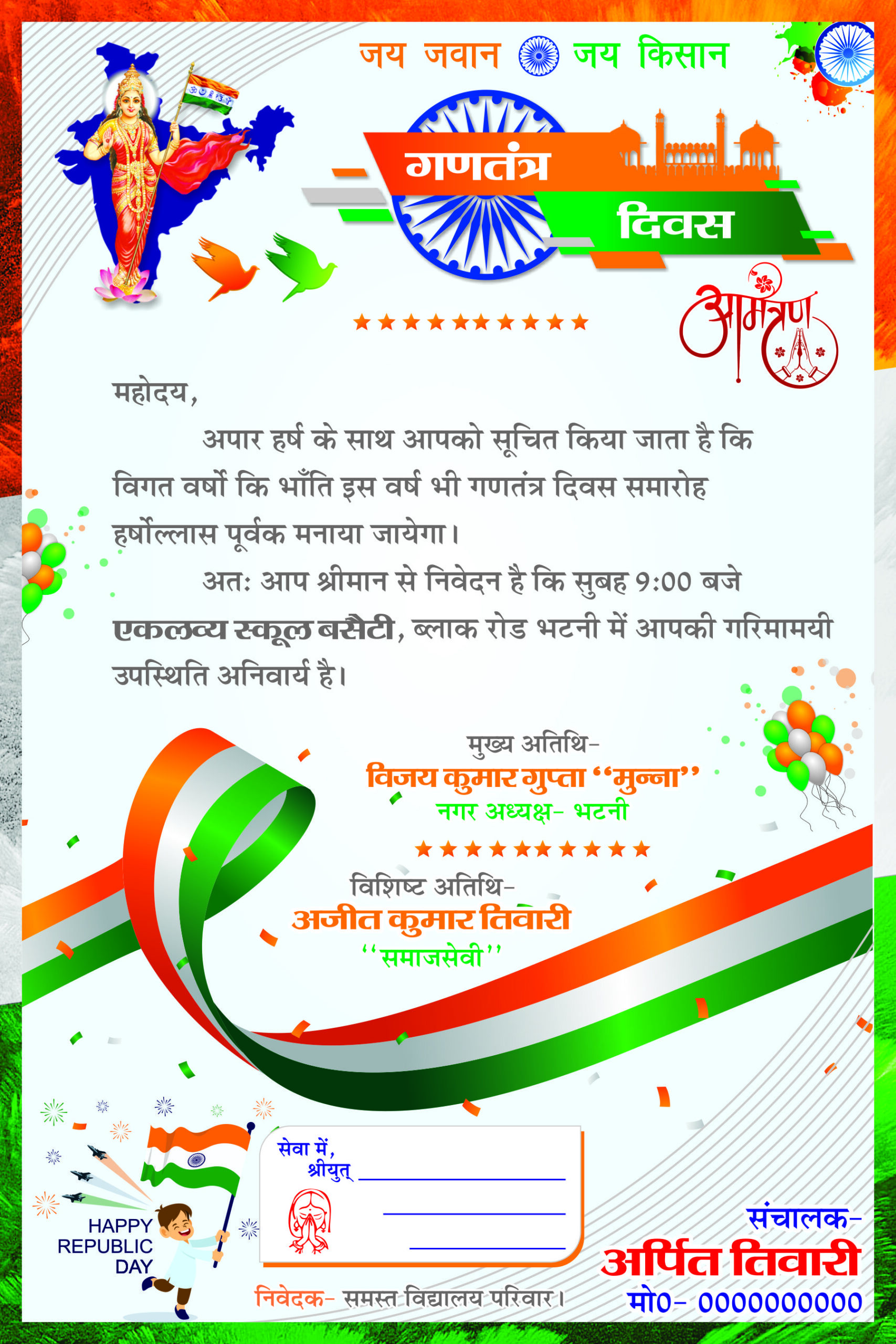 Republic Day invitation Card CDR File Hindi